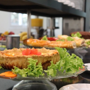 Comece o dia com um festim de sabores no nosso buffet de café-da-manhã, repleto de frutas frescas, pães irresistíveis e frios de qualidade.